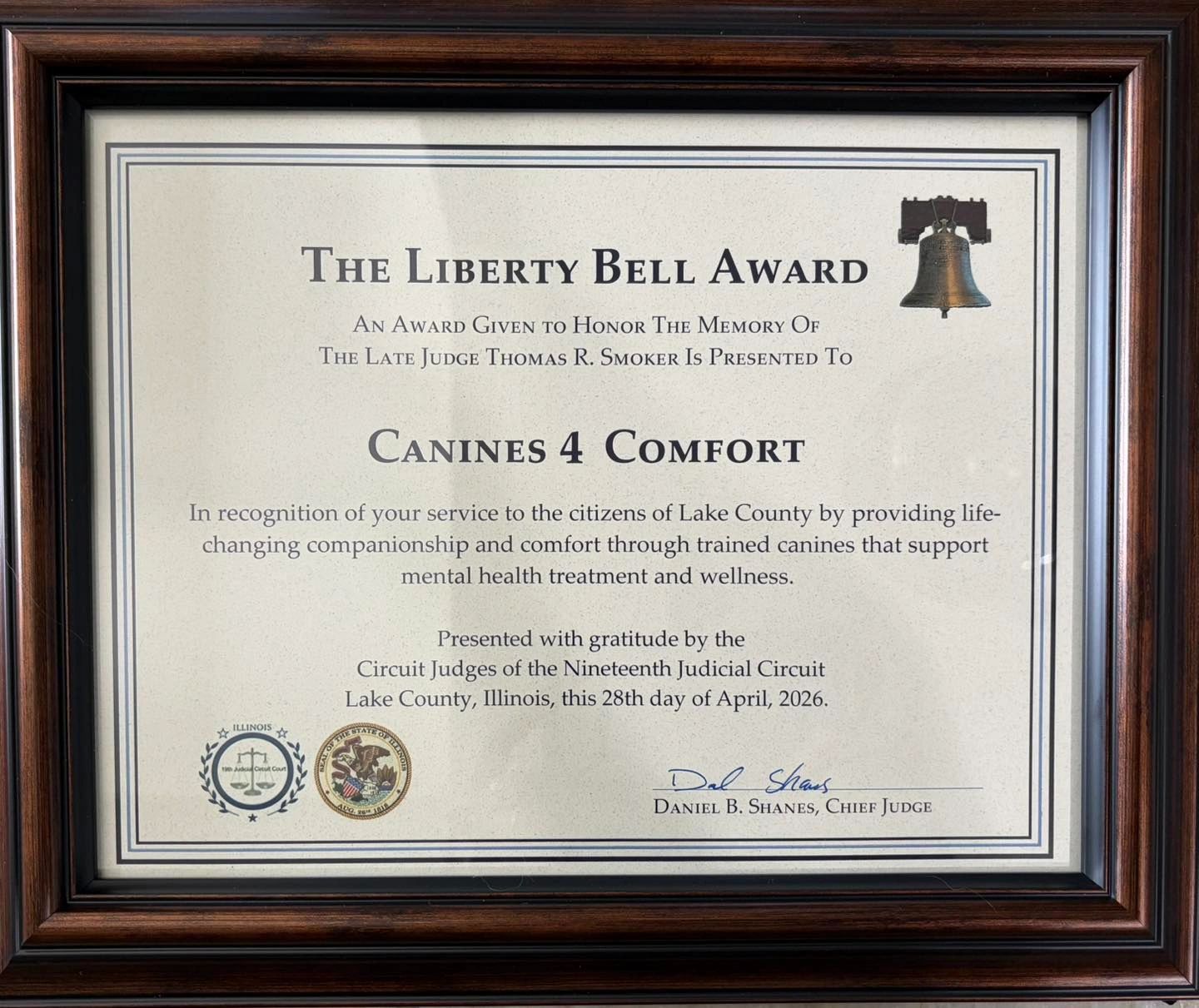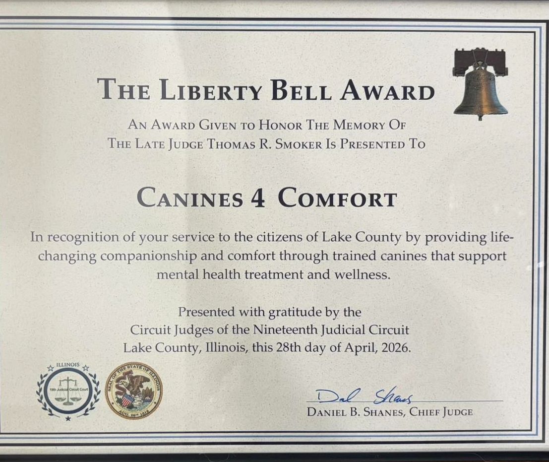 Relationships that 'heel'—Canines 4 Comfort is a 501(c)(3) that provides trained dogs to support mental health treatment and wellness. We offer these services within a 60-mile radius of Round Lake, Illinois.